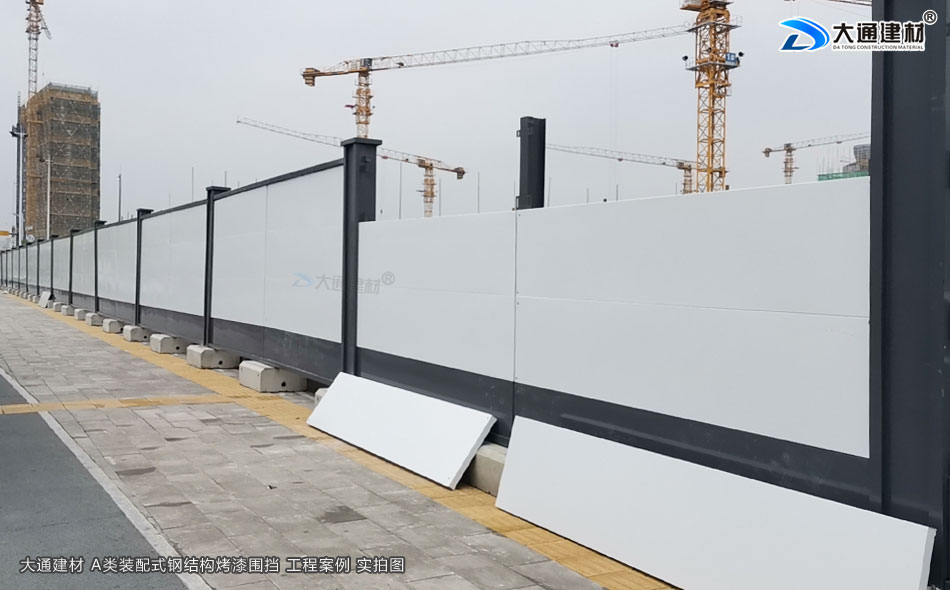 大通建材A類裝配式鋼結構烤漆工地施工圍擋半龍骨款安裝如上圖與下圖展示