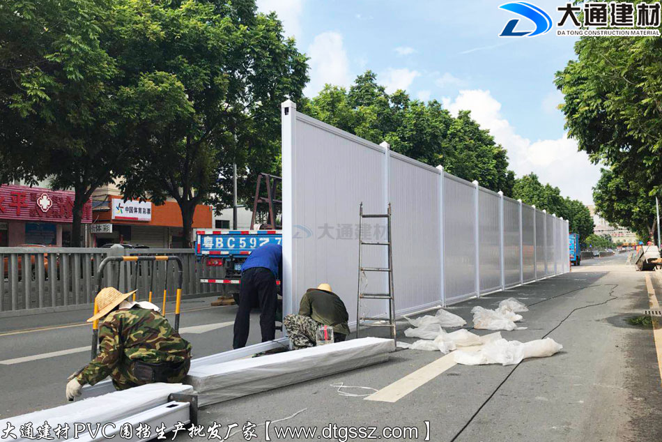 大通建材廠家批發符合佛山市政標準白色PVC圍擋,PVC圍擋生產源頭廠家,備有充足的PVC圍擋庫存,用戶下單 大通即可安排發貨,大通PVC圍擋美觀環保、安全穩固、經久耐用,在使用中有較好的防護能力,適合市政道路/地鐵工程/地產建設等選用。