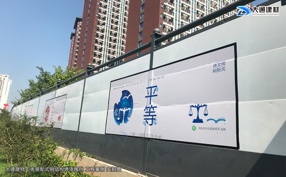 深圳市大通建材有限公司,大格局、通天下! 新型裝配式鋼結(jié)構(gòu)圍擋A款/B款/C款,PVC圍擋,圍擋基礎(chǔ),工地大門等產(chǎn)品生產(chǎn)廠家電話13826562448