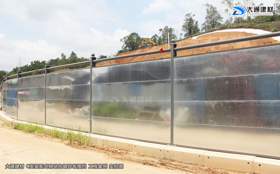 深圳市大通建材鍍鋅板鋼圍擋C款的圍擋墻板采用鍍鋅工藝,圍擋每一檔的長度都是3米,此工程項目使用的大通建材鍍鋅圍擋C款的高度是2.4米,這一款圍擋是帶立柱帽子的,符合市政標準。鍍鋅板鋼圍擋C價格與比圍擋烤漆C款相價格更便宜些,備受工程施工項目單位喜愛。