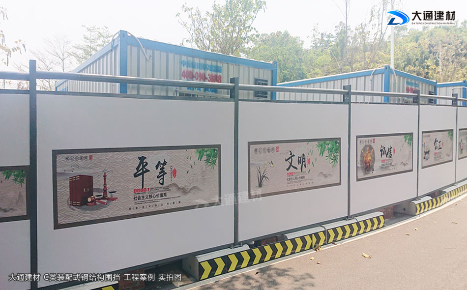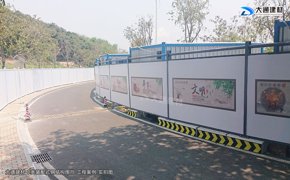 深圳市大通建材圍擋C款符合深圳市政新標準,是一款裝配式圍擋,采用鋼結(jié)構(gòu)設計,由鍍鋅墻板、立柱、上下橫梁等配件組成,拆裝方便、美觀環(huán)保、安全穩(wěn)固,適合深圳市政道路、房地產(chǎn)建設、小區(qū)改造施工等工程使用。