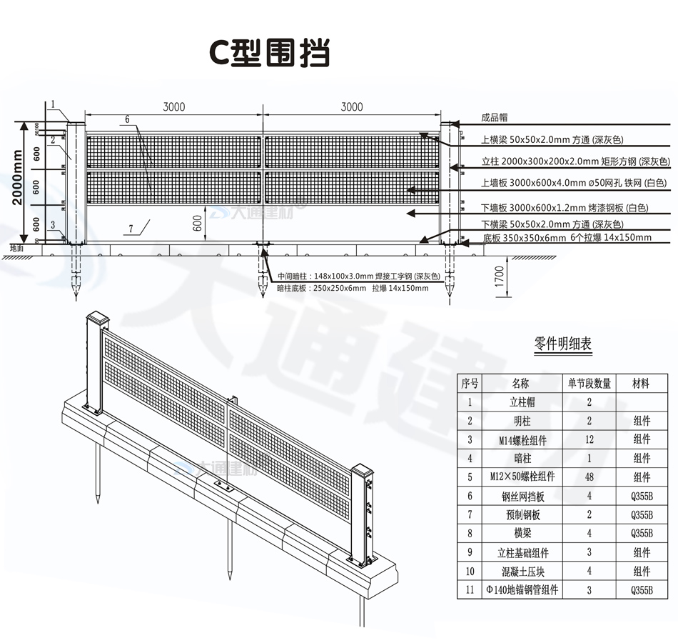 深圳市大通建生產的C型圍擋采用鋼結構設計,更安全穩固,抗風能力更強,大多數能抵抗10級以上的風力,適用于市政建設施工、房地產項目施工、高架橋施工、地地鐵項目施工、路橋維護施工、隧道施工、立面改造施工、廠房隔斷施工等各種項目工程,一款好的圍擋能為工地施工安全保駕護航。大通為各項目工程單位提供圍擋生產定制、施工安裝等包工包料的服務,了解更多“大通C型圍擋”詳情 請致電13826562448 梁先生