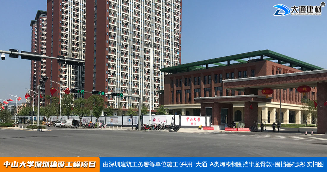 建設工程施工工地四周應按規定設置連續、密閉的鋼結構施工圍擋,建造多層、高層建筑的還應設置安全防護設施。在市區主要路段和市容景觀道路及市場、機場、碼頭、車站廣場等人流量、車流量比較多的地方設置的施工圍擋的高度不得低于2.5m,在其它路段設置的圍擋的高度不得低于1.8m。而深圳市大通建材A類鋼圍擋烤漆半/無龍骨款的標準高度是2.5米、長度為6.3米一擋,而圍擋高度特殊需求的如3/米/4/米/5米/6/米等高度的可以進行定制化生產。